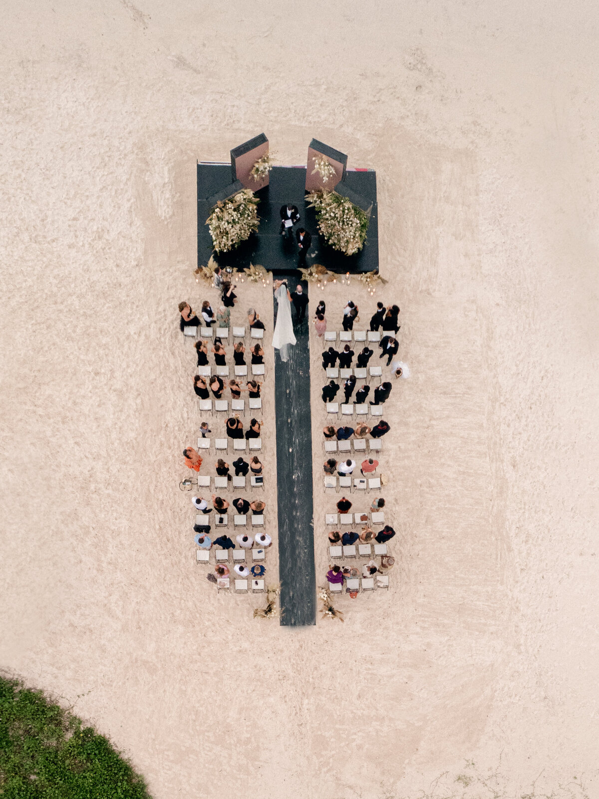 We mixed city fashion & sleek black with sandy toes & dried palms to create a beachside wedding with style. Nizuc Resort was the perfect backdrop to crate a more moody feel than the traditional tropical destination wedding.